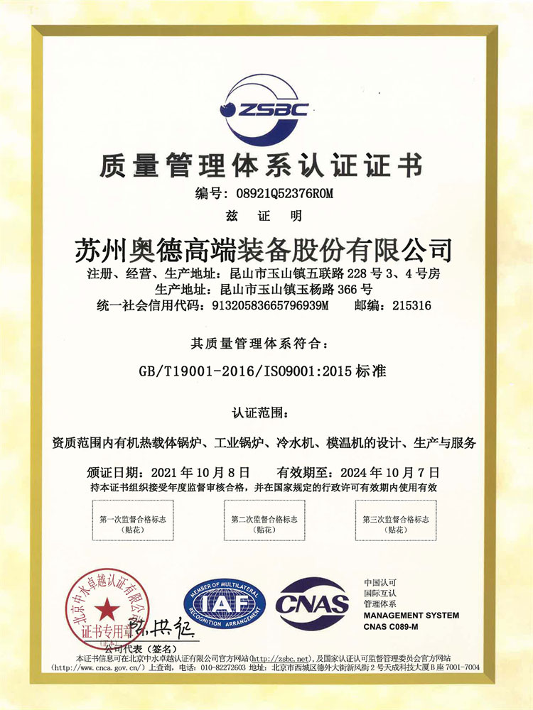 奧德于2004年成立于深圳,2007年在蘇州成立蘇州奧德高端裝備股份有限公司,一直專注工業(yè)溫度控制領(lǐng)域,是集研發(fā)、生產(chǎn)、銷售為一體的溫度控制設(shè)備制造企業(yè),歷經(jīng)21年的創(chuàng)新發(fā)展與沉淀,奧德從早期的模溫機(jī)、冷水機(jī)生產(chǎn),發(fā)展到今天的工業(yè)溫控裝備系統(tǒng)集成、高端精密溫控設(shè)備的研制。
